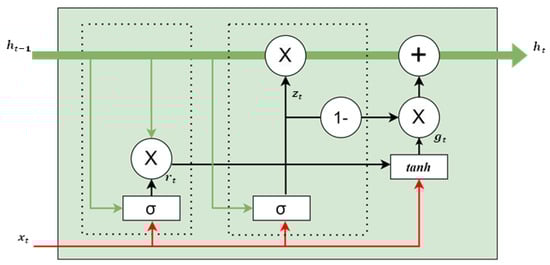 At each time step t, a GRU cell consists of an update gate and a reset gate . The operation process of GRU is defined as follows: