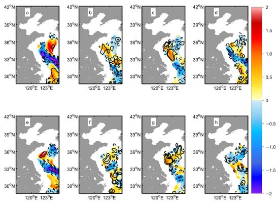 These findings suggested that WSmeso could be effectively represented by SSTmeso using the mesoscale wind field empirical model derived from Tikhonov’s regularization method. Then, we used the method and model described in Section 2 to study the effect of the mesoscale SST–wind coupling on dynamic processes in YS and ECS.