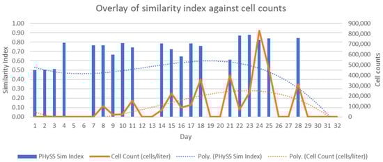 A graphical overlay of the SI against the cell count.