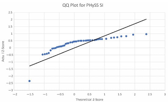 In our comprehensive study, an in-depth distribution analysis was performed to scrutinize the statistical behavior of the SI values and the direct measurements of phytoplankton cell counts. This analysis stage is crucial for understanding the underlying statistical properties of our datasets, which, in turn, influences the selection of appropriate analytical methods and the interpretation of correlation results. A key component of this analysis involved conducting tests for normality, a foundational assumption in many statistical inference techniques. We utilized quantile–quantile (QQ) plots as a graphical method to assess the normality of both the SI values and phytoplankton cell count data. QQ plots compare the quantiles of our datasets against the quantiles of a standard normal distribution. Deviations from a straight line in the plot indicate departures from normality, offering a visual representation of how our empirical data match or diverge from the expected distribution under normality.