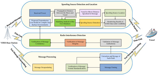 In conclusion, existing studies have enhanced the resilience of VDES data transmission through the examination of data structures and system architecture. However, a comprehensive assessment of the vulnerability landscape within VDES data links is still lacking. Vigilant monitoring of VDES data link reliability can expedite the prompt detection and precise localization of vulnerabilities, enabling alerts regarding these vulnerabilities to be sent to vessels or operational hubs. This proactive approach effectively mitigates security risks while ensuring the integrity of VDES communications received by maritime entities, thereby strengthening navigational safety. Consequently, this study addresses the vulnerability challenges facing VDES data links, particularly those arising from distinct interference scenarios outlined in the G1181 guidelines. It advocates for the combined detection method of radio interference detection and spoofing source identification and localization to maintain the credibility of VDES data links. To accomplish this overall goal, the following research objectives were established: