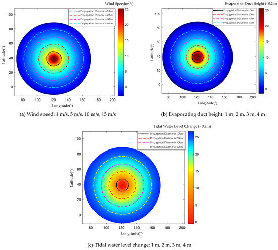 Therefore, considering the influence of hydro-meteorological factors such as sea surface wind speed, tidal water level changes, and evaporation duct height on the transmission of VDES signals, the expression for the transmission loss of VHF signals can be formulated as follows: