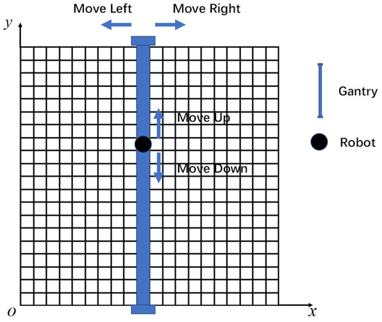 In the practical deployment of the real-world ship building environment [9], the motion of welding robots for ship building is always restricted on the gantry welding system. As shown in Figure 2, welding robots can only move up, down, left, or right along with the gantry. To address this, this paper mainly focuses on constructing the coordinated ship-welding environment and the motion of robots on the grid world to simulate this process.