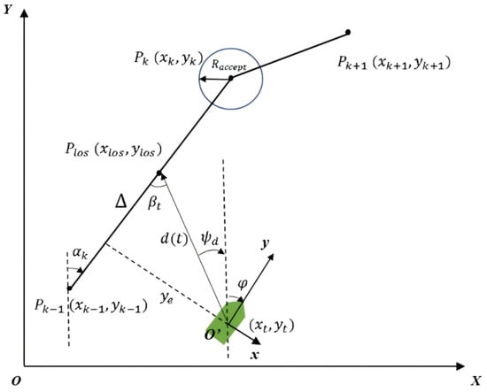 1] investigated the trajectory tracking control of USVs in the presence of wind and wave disturbances using the Serret–Frenet frame. An adaptive robust trajectory tracking controller for underactuated USVs was developed by designing nonlinear observers for the lateral velocity and yaw rate based on nonlinear backstepping and the Lyapunov stability theory [
