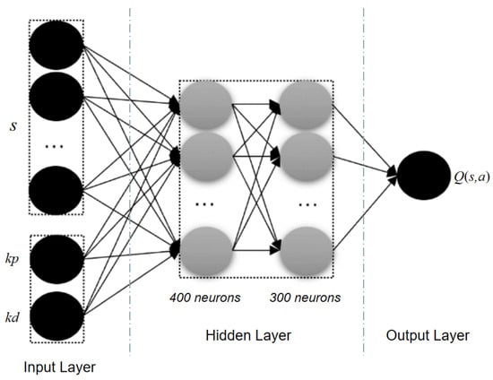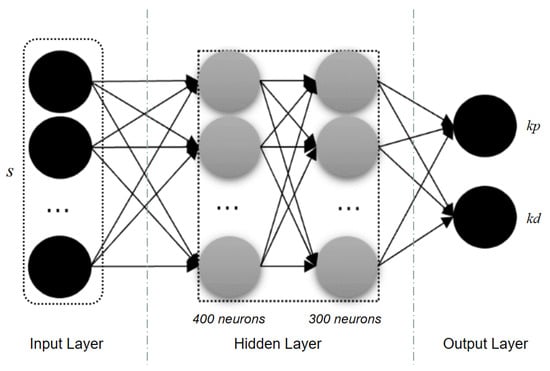 Figure 3, consists of an input layer, two hidden layers, and an output layer. The input layer has a dimension of 10, the two hidden layers contain 400 and 300 neurons, and the output layer has a dimension of 2. To extract features effectively, and also to prevent gradient saturation and vanishing problems, ReLU is used in the hidden layers and Tanh is used in the output layer.