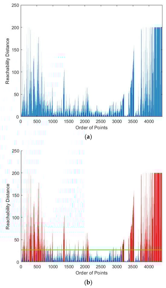 (3) Advanced clustering analysis using OPTICS: The study applies the OPTICS algorithm to the compressed data to improve the accuracy of route point extraction. Compared to the traditional DBSCAN algorithm, which struggles with parameter sensitivity and high noise levels in datasets, the OPTICS algorithm provides a more reliable clustering structure, thereby enhancing the effectiveness of subsequent path planning.