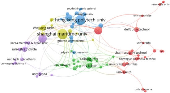 Each node (item) in the figure represents an author, with the size of the node indicating the number of papers that author has published in the field of green shipping. Larger nodes correspond to prolific authors who hold a significant position in green shipping research. The lines between nodes signify cooperative relationships between authors, with the thickness of the lines reflecting the strength of the collaboration. Thicker lines indicate stronger collaborative relationships, often signifying that the authors are part of the same research team or have engaged in long-term academic collaboration. The different colors in the figure represent distinct research teams, with each color cluster signifying a closely knit group of researchers often collaborating on a specific research topic.