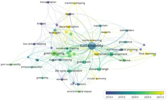 In this work, data synthesis was conducted using VOSviewer software (version 1.6.18) to perform keyword co-occurrence and collaboration network analyses. VOSviewer enables the visualization of networks between keywords, authors, institutions, and countries, helping to identify key research trends and collaboration patterns within the green shipping literature.