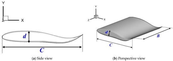 The definition of AR, shown in Figure 1, taking the NACA0015 foil as an example, can be calculated as, AR = B/C. When it comes to the characteristic thickness, it denotes the maximum thickness in the x-axis direction, denoted as d.