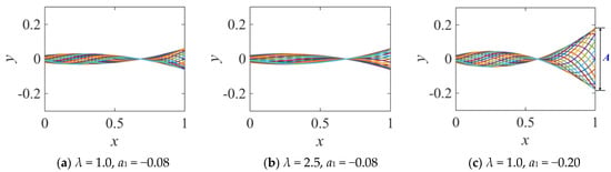 Figure 2 shows the diagram of the foil’s deformation process in a single period under the various combinations of motion parameters.