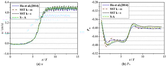 The finite-volume method is used to discretize Formula (3) using ANSYS Fluent software V17.2. The SST k-ω turbulent two-equation model is selected to enclose the governing equation for the sake of comparative high calculation accuracy. The standard wall function is adopted to handle with the flow near the wall. The first-order implicit method is utilized to deal with the time term in the governing equation, the second up-wind is adopted to cope with the convection term, and the central difference scheme is used to discretize the diffusion term. The coupling of pressure and velocity is solved by using the SIMPLE method.
