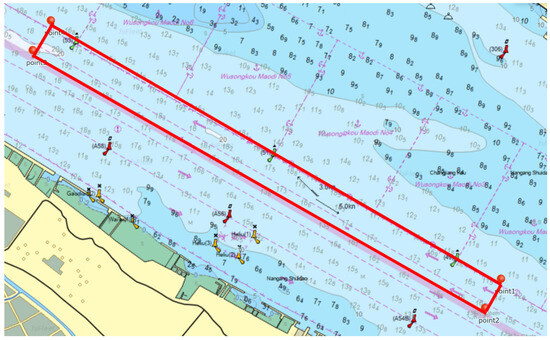 To show and compare the relationships among fundamental characteristics of the waterway traffic stream with and without considering vessel size, we choose a unidirectional channel in the south trough waters of Shanghai Harbor for this case study. With hundreds of ships passing it daily, the Yangtze Estuary area is a crucial connection for integrated river–ocean shipping with relatively heavy traffic. Due to traffic congestion and delays being common phenomena, this water area is very suitable for research and analysis of fundamental diagram [23]. The south trough is divided into two sections, upper and lower. There is only one main channel in the upper half. The lower half of the main channel is divided into two branch channels, one leading to the East Sea and the other to Ningbo and Zhoushan waters. The upper half of the south trough is open and heavily traveled, with abundant AIS data resources, and there is no shelter near the inland side to interfere with AIS data transmission. The study area selected for this case is in the upper half of the south trough. As shown in Figure 6, the channel is 4 nautical miles long and 0.33 nautical miles wide. The latitude/longitude range is shown in Table 1.