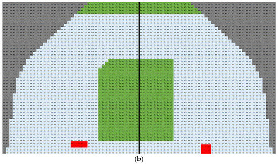 - Deck Information: Each deck layer of the target space required specific input. The grid was adapted to the ship deck floor plan as the space where pipe routing would be conducted, including obstacles and the starting and ending points of each pipe. The grid geometry had sides of 0.13 m.