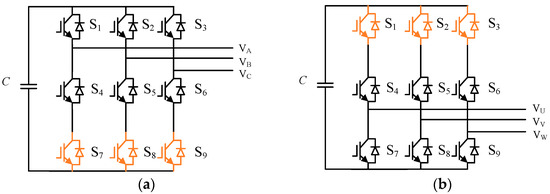 - Pan, L.; Zhang, J.; Zhang, J.; Pang, Y.; Wang, B.; Wang, K.; Xu, D. A Novel Space-Vector Modulation Method for Nine-Switch Converter. IEEE Trans. Power Electron. 2020, 35, 1789–1804. [Google Scholar] [CrossRef]