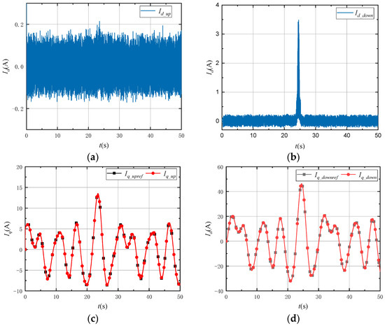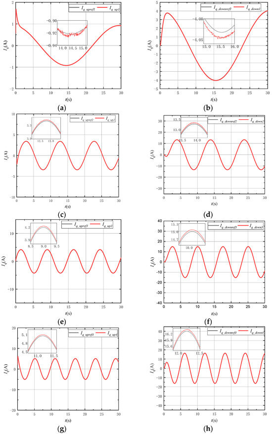 It can be seen that by using the MPCC-DD controller with the duty cycle control method, the q-axis current under different frequencies can be controlled to follow the reference value well and achieve target damping.