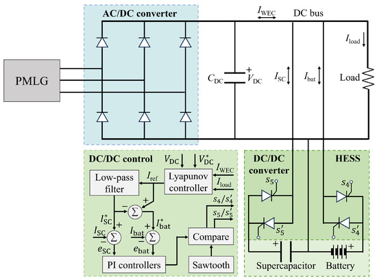 where , , and are the desired current of the HESS, the filter capacitor, the total current of the VIWECs, and the DC load current, respectively. For the IES case, is replaced by the individual current of each VIWEC.