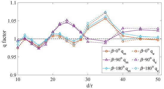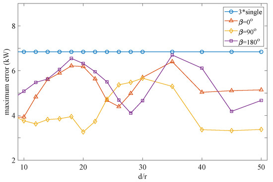 For the frequency response of the excitation force, WEC2 and WEC3 exhibit the same variation at , as shown in Figure 7a. The RDC for each VIWEC, , and the interaction between VIWECs in the array, , are presented in Figure 7b. In this figure, as the separation distance grows, shows a decrease in amplitude along with a phase shift. The AMIF for each VIWEC on the others in the array shows a significant decrease with increasing separation distance, as depicted in Figure 7c, and remains relatively small compared to the 1893 kg AMIF of each VIWEC itself. The radiation IRF of each VIWEC dominates compared to the influence of other VIWECs, and the impact of neighbouring VIWECs weakens considerably as the separation distance increases, as shown in Figure 7d.