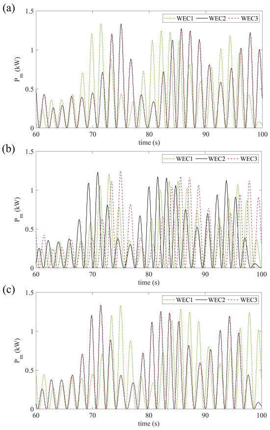 Comprehensive simulations are carried out to assess the performance of the VIWEC array’s modelling and control, in terms of generated power and output DC voltage, with respect to varying VIWEC separation distances and incident wave directions.