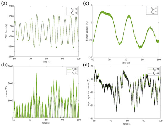 For the PMLG, the PTO force is associated with the dq-axis currents and , with their relationship detailed in Equation (14). Thus, tracking of can be realised by controlling and . The d-axis current reference is set to , offering two benefits: (i) maximising the force-to-current ratio, and (ii) to compensate the nonlinear term in Equation (14). Thus, the q-axis current reference is simplified as