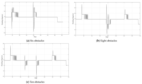 - It still cannot completely solve the dynamic constraint problem. Particularly, the steering angle change of AUV during underwater navigation is not considered. As shown in Figure 5, at a certain moment, its steering angle changes more than 180° compared with the previous moment.