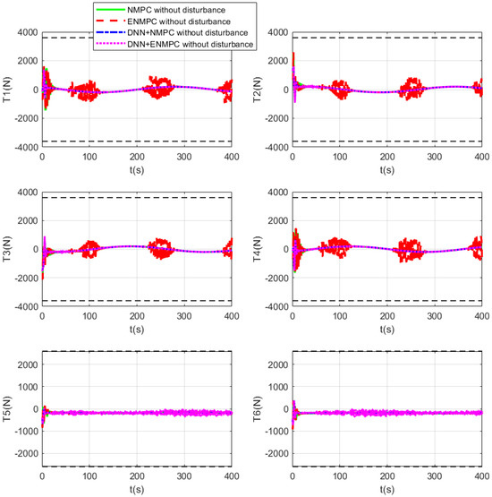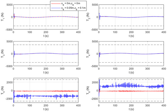 Figure 28. Comparison of thruster force response under having the center of mass shift and without the center of mass shift conditions.