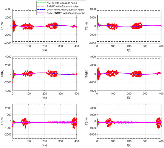 Figure 20. Control inputs of the ROV with gaussian noise.