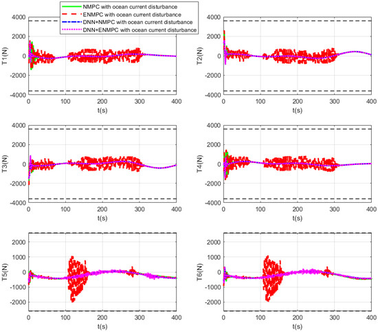 Figure 25. Control inputs of the ROV with ocean current disturbances.