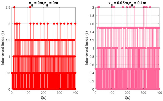 Figure 29. Comparison of inter-event times under having the center of mass shift and without the center of mass shift conditions.
