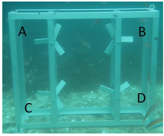 Figure 3. Submerged tidal stream turbine structure (four turbines (A–D)). Courtesy of Prof. Yusaku Kyozuka [39].