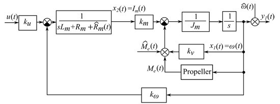The block diagram of the thruster described by the system of Equations (1) and (2) is shown in Figure 1.