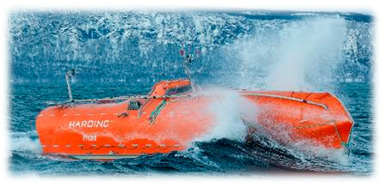 The sea spray and initial icing on the FF1200 lifeboat (Photo: Jan-Arne Pettersen, UiT) [12].
