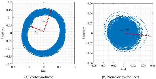 Figure 3a, referred to as the vortex-induced vibration circle. On the other hand, in cases of non-vortex-induced vibration, the real-imaginary plot appears disorderly, as shown in