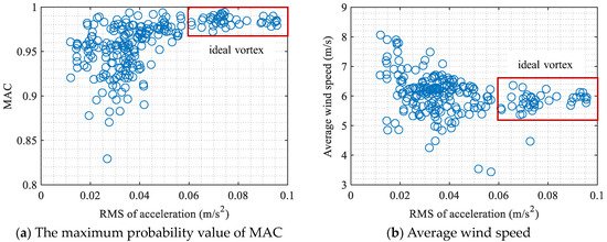 Nevertheless, due to limitations in the monitoring data, only four indicators have been applied to identify vortex-induced vibration. In fact, other information such as wind direction angle is also an important basis for accurately distinguishing vortex-induced vibration. If the monitoring data allows, more wind field characteristics should be applied in the future.