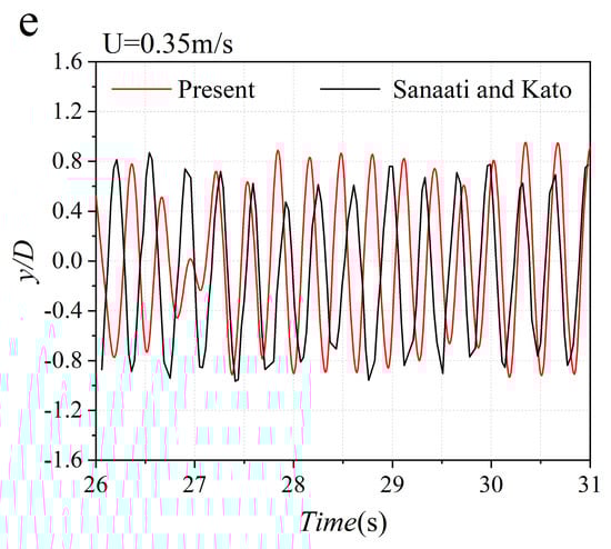 - Guilmineau, E.; Queutey, P. Numerical Simulation of Vortex-Induced Vibration of a Circular Cylinder with Low Mass-Damping in a Turbulent Flow. J. Fluids Struct. 2004, 19, 449–466. [Google Scholar] [CrossRef]