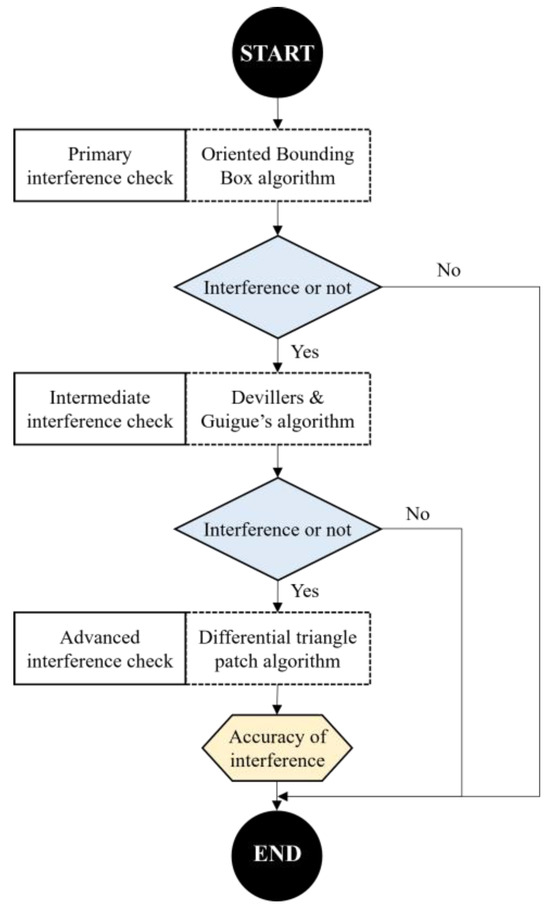 Flowchart of advanced interference check based on a differential triangle facets algorithm.
