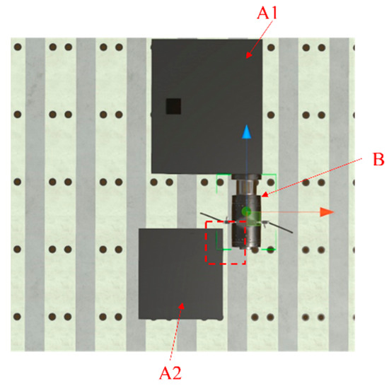 As depicted in Figure 2, the OBB for the virtual prototype of the test article is erected in Unity3D, utilizing the previously elucidated algorithm. A1 and A2 represent disparate test objects, while B symbolizes the loading device. Through the primary interference check algorithmic system, it is ascertained that B does not interfere with A1 but exhibits interference with A2. This observation underscores the potential for misjudgment in the primary interference check, thereby necessitating a more detailed examination of triangular patch intersections.