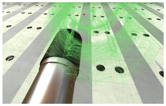 In the virtual–real fusion experiments of ship structures, virtual assembly technology aims to conduct the assembly design and physical scene presentation of the experimental loading devices, connecting devices, and experimental objects within a virtual environment. This technology also enables the virtual mapping description and visualization of the physical test assembly process. The installation feasibility of each component in the physical test design scheme is verified through the virtual assembly. Additionally, interference inspection of potential collisions and movements during the experimental process is conducted to ensure that the designs of experiments achieve the desired outcome. Consequently, collision detection is the core technology of the virtual assembly in the virtual–real fusion experiments of ship structures. Current collision detection methods primarily include the spatial decomposition method [15,16] and the hierarchical bounding box method [17,18,19]. Based on these methods, numerous researchers have proposed corresponding collision detection algorithms for different detection objects, typically divided into rough detection and detailed detection. For rough detection, the collision volume bounding box algorithm is primarily utilized, such as the bounding sphere [20], AABB (Axis-Aligned Bounding Box) [21], OBB (Oriented Bounding Box) [22], k-DOP (K-Discrete orientation polytope) bounding box [23], and mixed bounding box [24]. These algorithms only need to determine if there is an intersection between geometries, making them efficient but not precise. For detailed detection, the triangular facets algorithm is primarily utilized. Kim [25] proposed a hierarchical collision detection algorithm that combines CPU and GPU usage. The CPU is employed for traversal and coarse detection of hierarchical bounding bodies, while the GPU handles basic collision detection of triangular facets. Pabst [26] uses the CPU to update the bounding volume and triangular facets and performs both rough and detailed collision detection on the GPU. Through this task decomposition strategy, the algorithm can efficiently use a uniform grid to divide space, thereby maximizing the speed of the collision detection process. Therefore, the triangular facets algorithm is more suitable for interference detection of complex contour models, offering significantly higher detection accuracy than the collision volume bounding box algorithm, though at the cost of reduced detection efficiency.