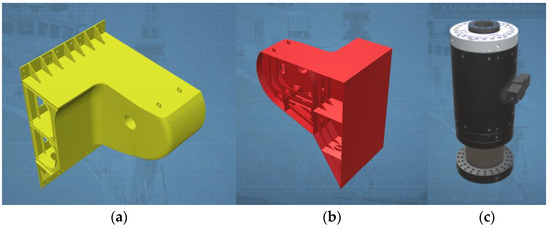 High-fidelity virtual modeling of the connector model test system. (a) Virtual model of bow connector, (b) virtual model of stern connector, and (c) virtual model of cylinder actuator.