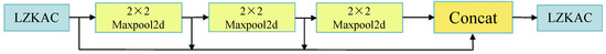 Figure 4 below shows the SPPFLKZ attention mechanism module reconstructed using LZKAC, consisting of LZKAC, MaxPool2d (Spatial Pyramid Pooling Fast), and Concat layers.