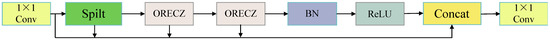 Figure 10 illustrates the structure of the C2f-ORECZ module, where the ORECZ module replaces the Bottleneck layer in C2f. To maintain optimization diversity and stabilize the training process, a BN (Batch Normalization) layer and a Relu (Rectified Linear Unit) layer are sequentially added before the concert operation. The excessive use of BN and Relu layers has been shown to introduce significant computational overhead during the training stage, leading to excessively large model weights in past reparameterization models. Therefore, considering efficiency, the C2f-ORECZ module in this study employs only one BN layer and one Relu layer, reducing certain training overheads.