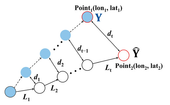 where and represent the latitude and longitude of point 1 and and represent the latitude and longitude of point 2, respectively. is the radius of the Earth. A smaller SE indicates a higher prediction accuracy.