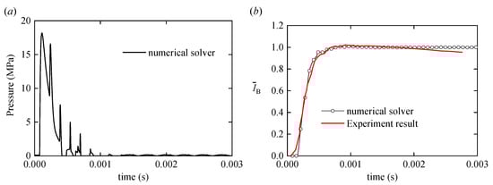 In the one-dimensional numerical solver, the Eulerian compressible fluid is discretized by a rectangular mesh with a grid size of 1 mm, and the governing equations are solved by the third-order Runge-Kutta Discontinuous Galerkin method [].