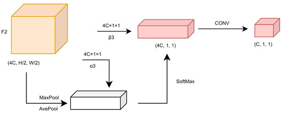 On each of the three different attention lines of feature map F1, original feature map, and feature map F2, we add trainable learning parameters weights and biases for the learning-wise activation of the control gate channel. As shown in Figure 7, we pass the attentional information from the three different branches through the gated channel after aggregating them to achieve self-learning gated adaptation.