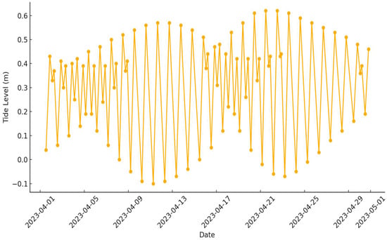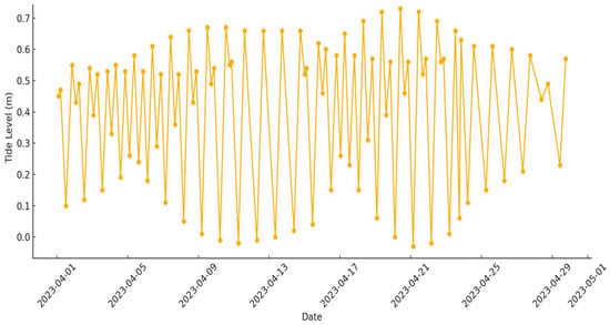 Tide predictions for April 2023 derived from data at NOAA tidal station at the Galveston Bay entrance, North Jetty (Station ID: 8771341).