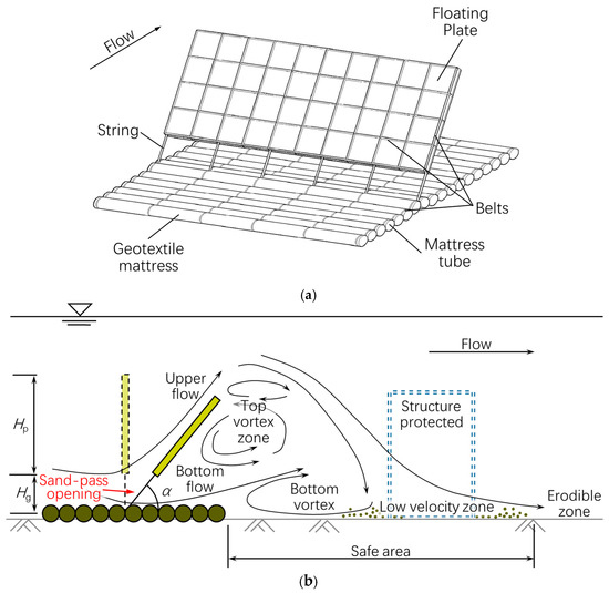 - Xie, L.; Zhu, Y.; Li, Y.; Su, T.-C. Experimental study on bed pressure around geotextile mattress with sloping plate. PLoS ONE 2019, 14, e0211312. [Google Scholar] [CrossRef] [PubMed]