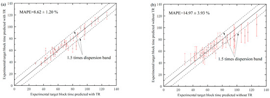 Comparisons of target block time predict results: (a) with-TR models; (b) without-TR models.
