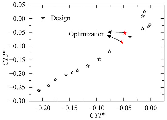 Figure 6 that a relatively uniform solution set is obtained using the text method, covering a variety of optimization design schemes with forward thrust coefficients ranging from 0 to 0.2 and reverse thrust coefficients ranging from 0 to −0.25.