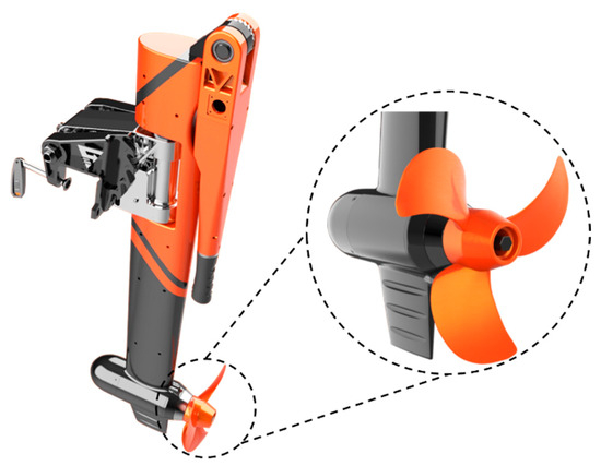 The CFD simulations revealed that at a forward speed of 6 knots, the designed propeller generated a thrust of 420 N and a torque of 15.5 N m, with a power consumption of 2272 W. In the astern condition at 0 knots, the propeller produced a reverse thrust of −475 N and a torque of −18.9 N·m, consuming 2770 W of power. These results confirm that the propeller design meets the specified requirements, and the propeller is shown in