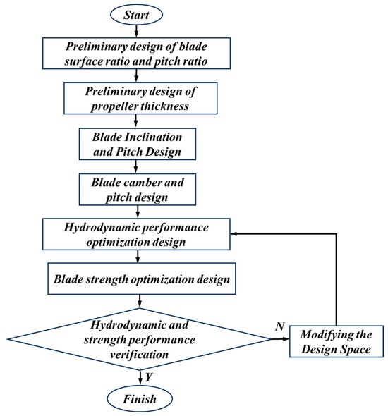 Figure 10. After preliminarily determining the blade geometry using the design methods introduced in the previous two subsections, the load distribution of the blades can be designed and optimized. The hydrodynamic and strength performance are then checked in turn to form the final scheme. It should be noted that the design in this paper uses the IK series airfoils, which have excellent performance and are widely used in low ice-class propellers.