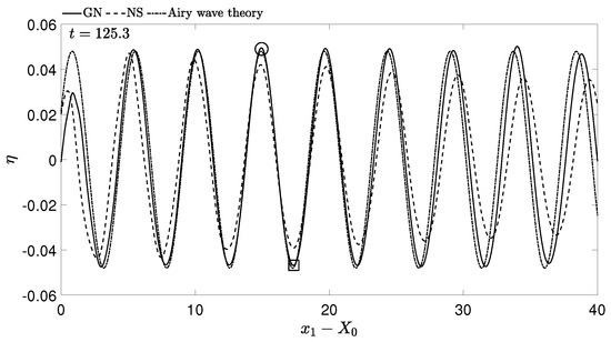 where c is the linear wave celerity and represents or . The tank length is also long enough to minimize wave reflections into the domain. Although this is an approximate condition, it has proven to be quite accurate in previous studies as long as the tank length is long; see, e.g., [24].